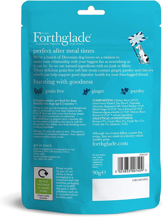 Forthglade Natural Dog Treats for Digestive Health - Grain Free Soft Bites (8 x 90g) Resealable Bags - for Dogs aged 2 Months+