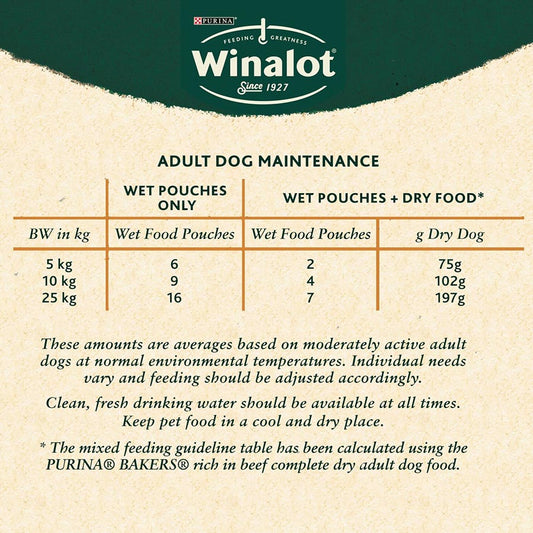 For over 90 years, Purina Winalot has been feeding the nation's dogs with hearty, nourishing meals. Made with quality ingredients like meaty chunks, vegetables, and essential vitamins, Winalot wet food supports strong muscles, healthy digestion, and a shiny coat. It's real food for real dogs – trusted by generations.
