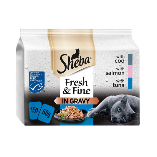 Sheba Fresh & Fine Wet Cat Food Pouches Fish in Gravy (15pc x 50g) - 3 Packs