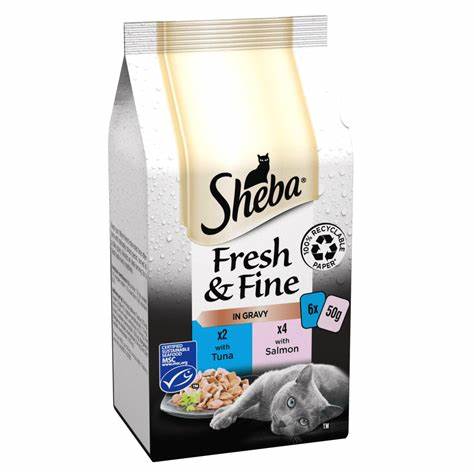 Sheba Fresh & Fine Wet Cat Food Pouches Salmon & Tuna in Gravy ( 6x50g ) x 8 Packs