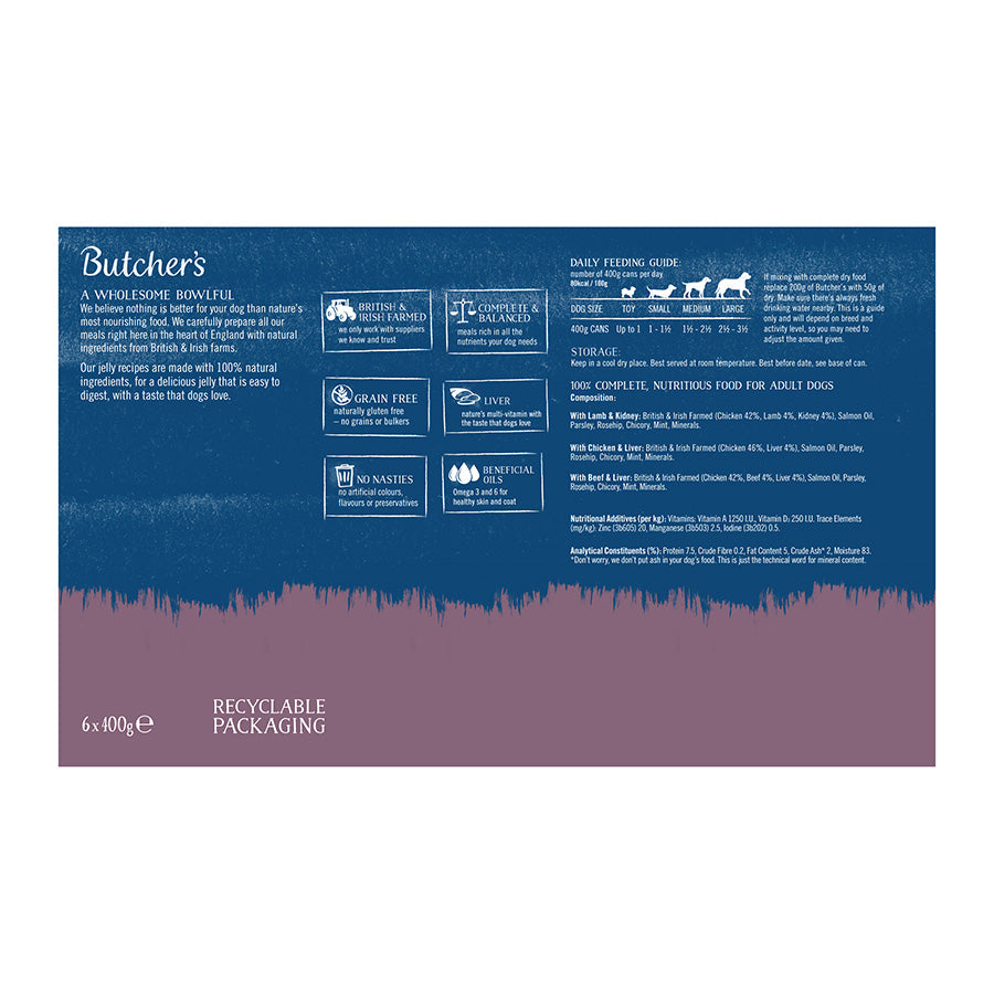 Butcher's Recipes in Jelly Dog Food Cans 6pk - 400g