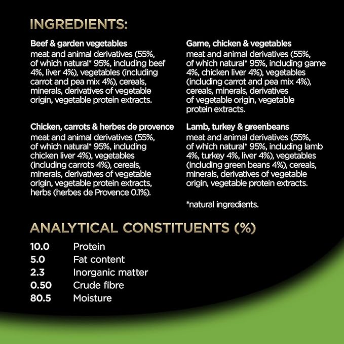 Our Garden Terrine collection offers four delicious, complete and balanced wet dog food recipes your dog will love: Game, Chicken & Vegetables; Chicken, Carrots & Provencal Herbs; Beef & Garden Vegetables; and Lamb, Turkey & Green Beans.