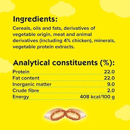 DREAMIES Chicken Cat Treats are the perfect snack for cats who crave a tasty crunch. Each treat is delightfully crunchy on the outside with a soft, flavourful centre that cats can’t resist. Enriched with vitamins, minerals, and no artificial flavours, they’re a delicious and wholesome reward—with only 2 kcal per treat. Just shake the bag and watch your cat come running!