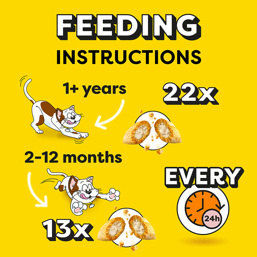 Dreamies™ Shake Ups – Seafood Variety bring a wave of flavour, fun, and nutrition to treat time! Packed with an exciting mix of shapes, colours, and irresistible seafood-inspired flavours, each treat features the signature crunchy outside and soft inside that cats love. Enriched with multivitamins and containing just 2 kcal per treat, they’re a purr-fect way to keep your cat happy, healthy, and always ready to play. Cast a line and treat your cat to a sea of irresistible bites!