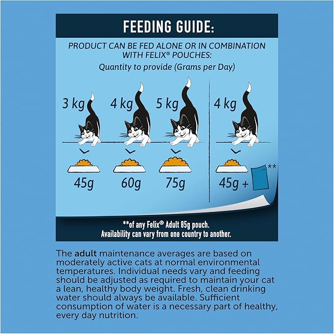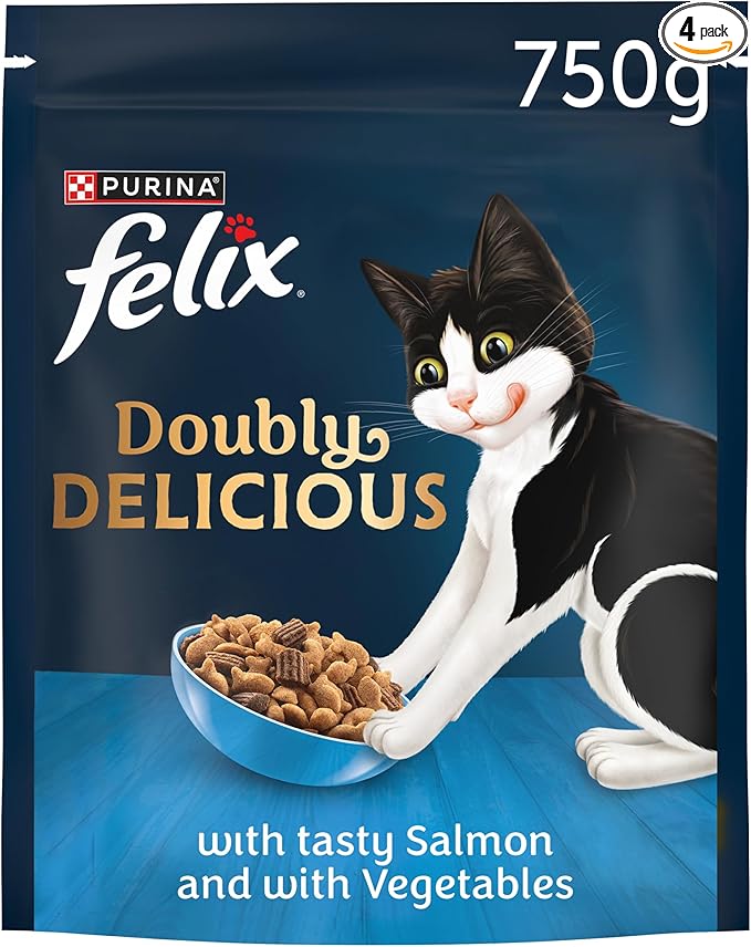 FELIX Doubly Delicious Dry is a tasty range of meals that will appeal to your cat's senses with an exciting combination of delicious Crunchy kibbles and Softer, more tender chunks. Your cat will love the delicious combination of flavours and crunchy and softer textures!