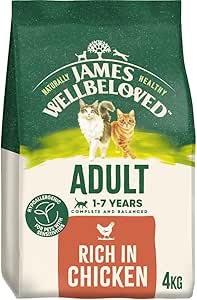 James Wellbeloved Adult Chicken Dry Cat Food is specially crafted for cats with sensitivities, using a carefully selected blend of natural ingredients. With chicken as the sole source of animal protein, it provides a delicious, highly digestible meal that supports your cat’s overall health and wellbeing.