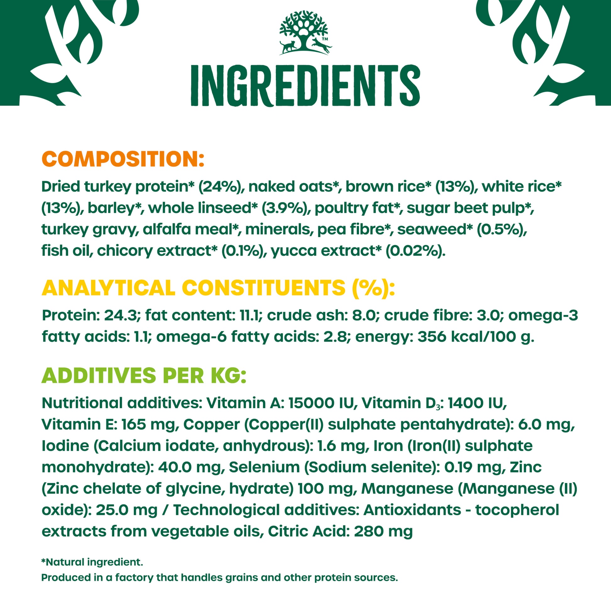 Crafted with a selection of nature’s finest ingredients, this delicious turkey dry dog food is both highly digestible and full of flavour. Each recipe is carefully formulated to support healthy digestion, strengthen immunity, and promote a shiny coat and healthy skin—providing your adult dog with a balanced diet that tastes great and nourishes from within.