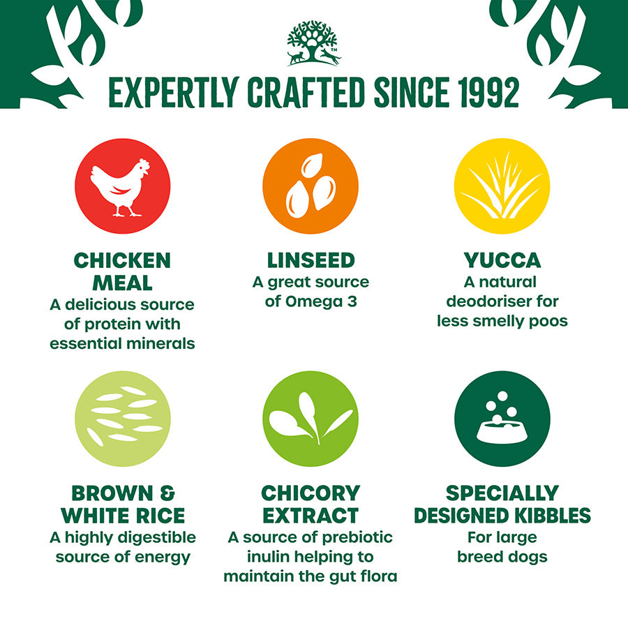Large Breed Friendly – Specially shaped kibbles tailored for the jaws and eating habits of larger dogs