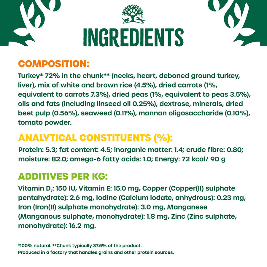 James Wellbeloved Small Breed Wet Dog Food – Turkey & Rice in Gravy is specially crafted for small adult dogs aged 1–7 years. Made with wholesome, natural ingredients and smaller, easy-to-eat chunks, this delicious recipe provides gentle nutrition tailored to the unique needs of small breeds. Hypoallergenic and free from common allergens, it’s ideal for sensitive stomachs — giving your dog all the goodness they need, with nothing they don’t.