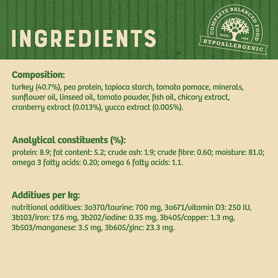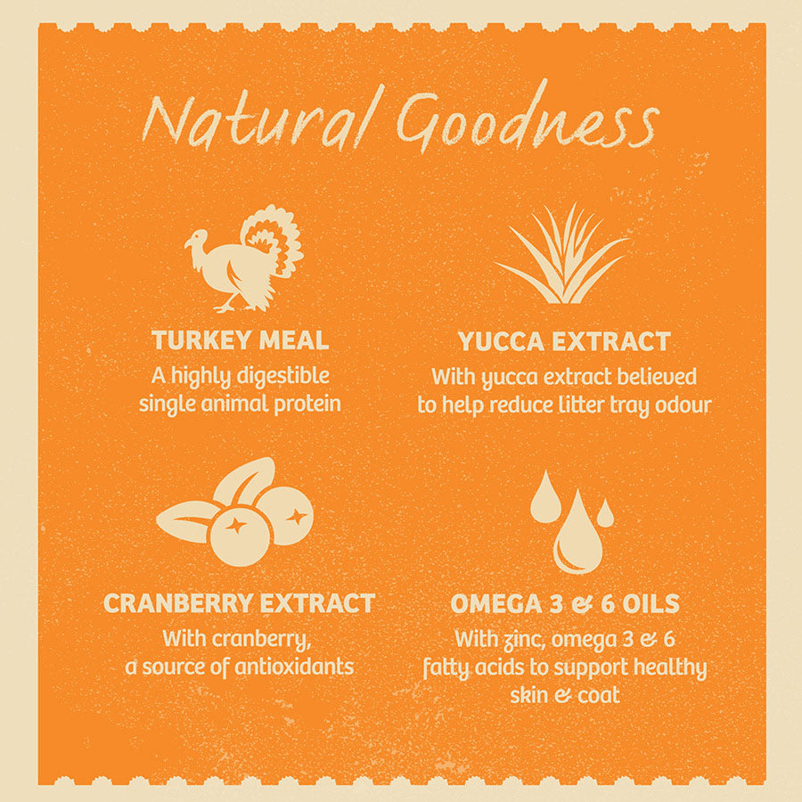 At James Wellbeloved, every recipe begins with nature. Using 100% natural turkey as the sole source of animal protein, this grain-free dry cat food is thoughtfully crafted with simple, wholesome ingredients and enriched with essential vitamins and minerals. It’s specially formulated to support your cat’s overall wellbeing while being gentle on sensitive tummies. Naturally hypoallergenic and free from cereals like rice and barley, it’s ideal for cats with food sensitivities—and you’ll never find any added artificial colours or flavours, now or ever.