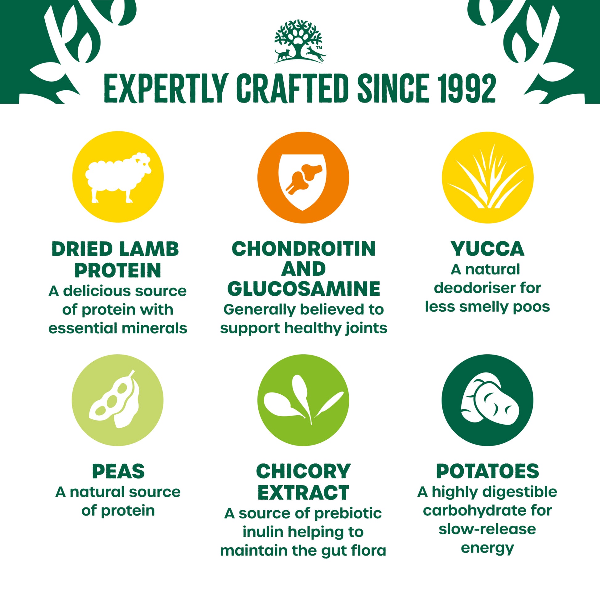 Thoughtfully crafted with a selection of nature’s wholesome ingredients, this grain-free dry dog food features flavourful lamb for a tasty, highly digestible source of quality protein. Specially tailored for senior dogs, the recipe is designed to support healthy aging with the inclusion of chondroitin and glucosamine to help maintain joint health and mobility, while providing balanced, complete nutrition.