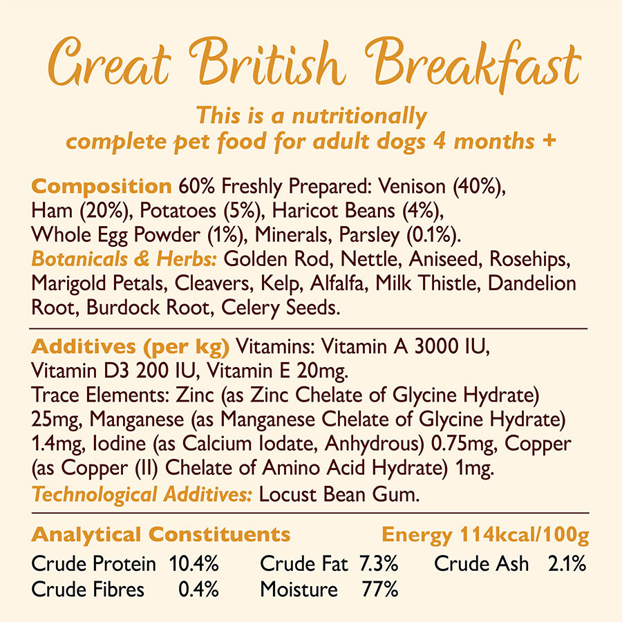 Start your dog’s day right with a wholesome breakfast they’ll love! Whether they’re up with the sun or prefer a lazy brunch, Lily’s Kitchen Great British Breakfast is a delicious, dog-friendly alternative to your morning fry-up. It’s packed with lean venison sausage, ham, egg, fibre-rich haricot beans, and a touch of parsley – everything your pup needs for a healthy, tail-wagging start.