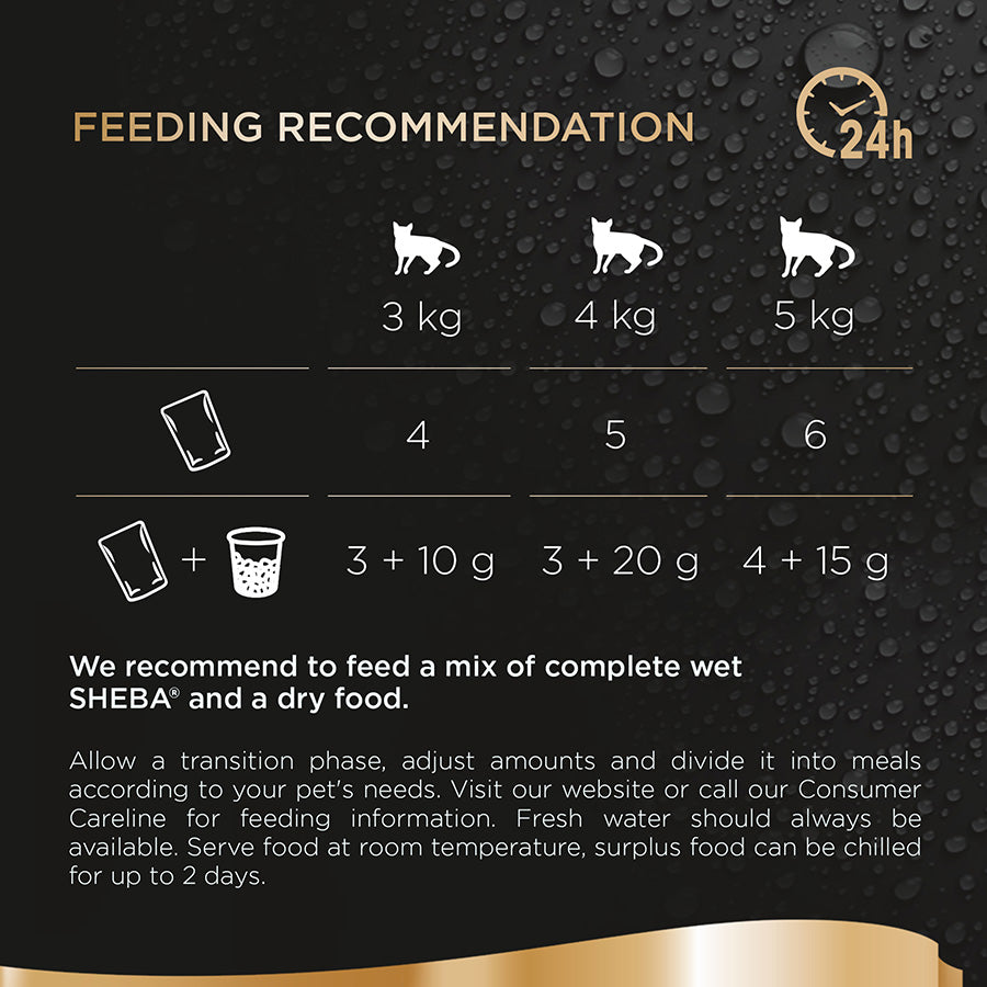 With the Sheba Fresh and Fine cat food range it's easy to give your cat the tastes they love with a fine combination of delicate pieces providing complete nutrition for your feline companion. Made from high quality ingredients with no artificial colours or preservatives, you can delight your cat-foodie with expertly prepared Sheba cat meals inspired by the taste of the most culinary metropoles from around world.